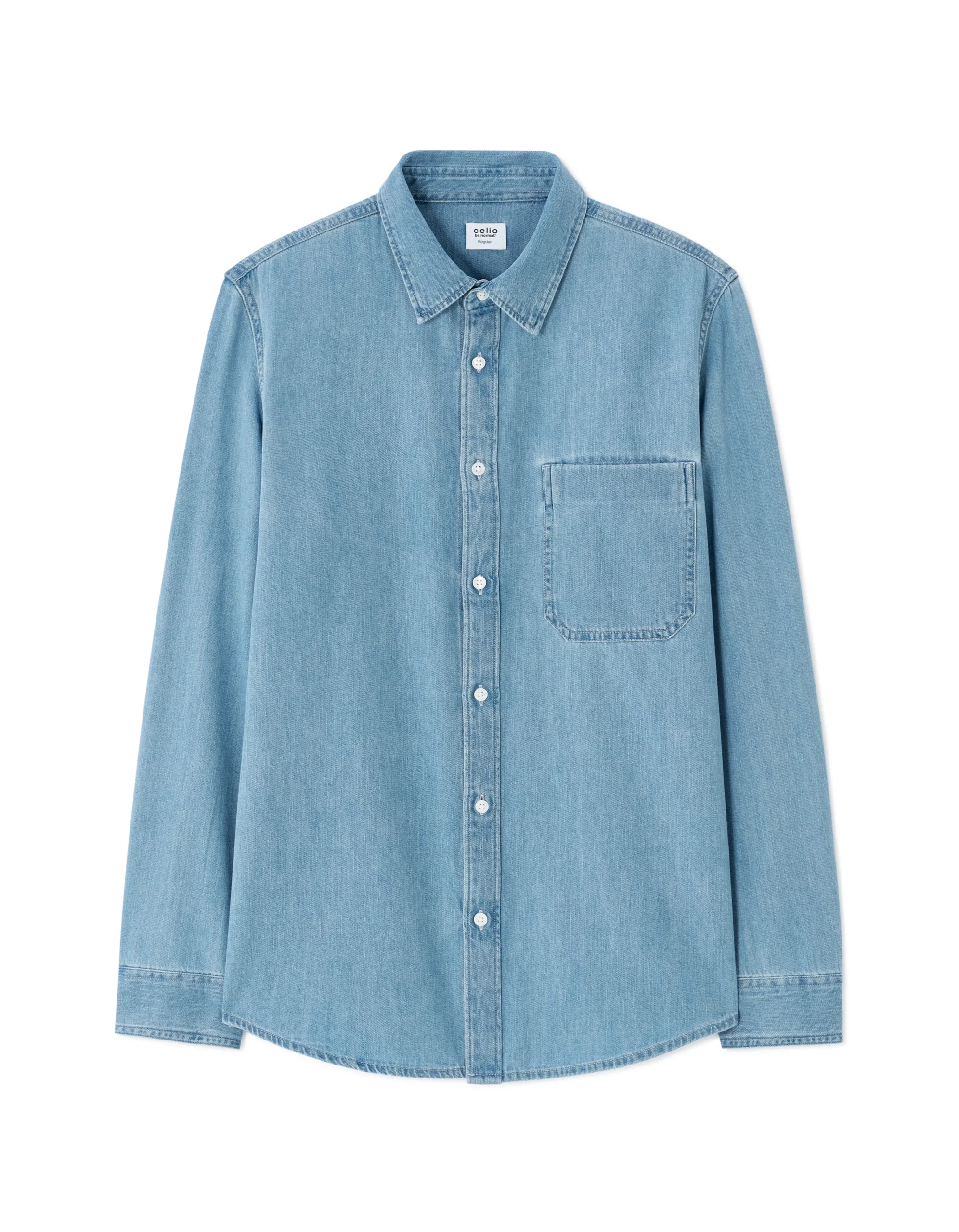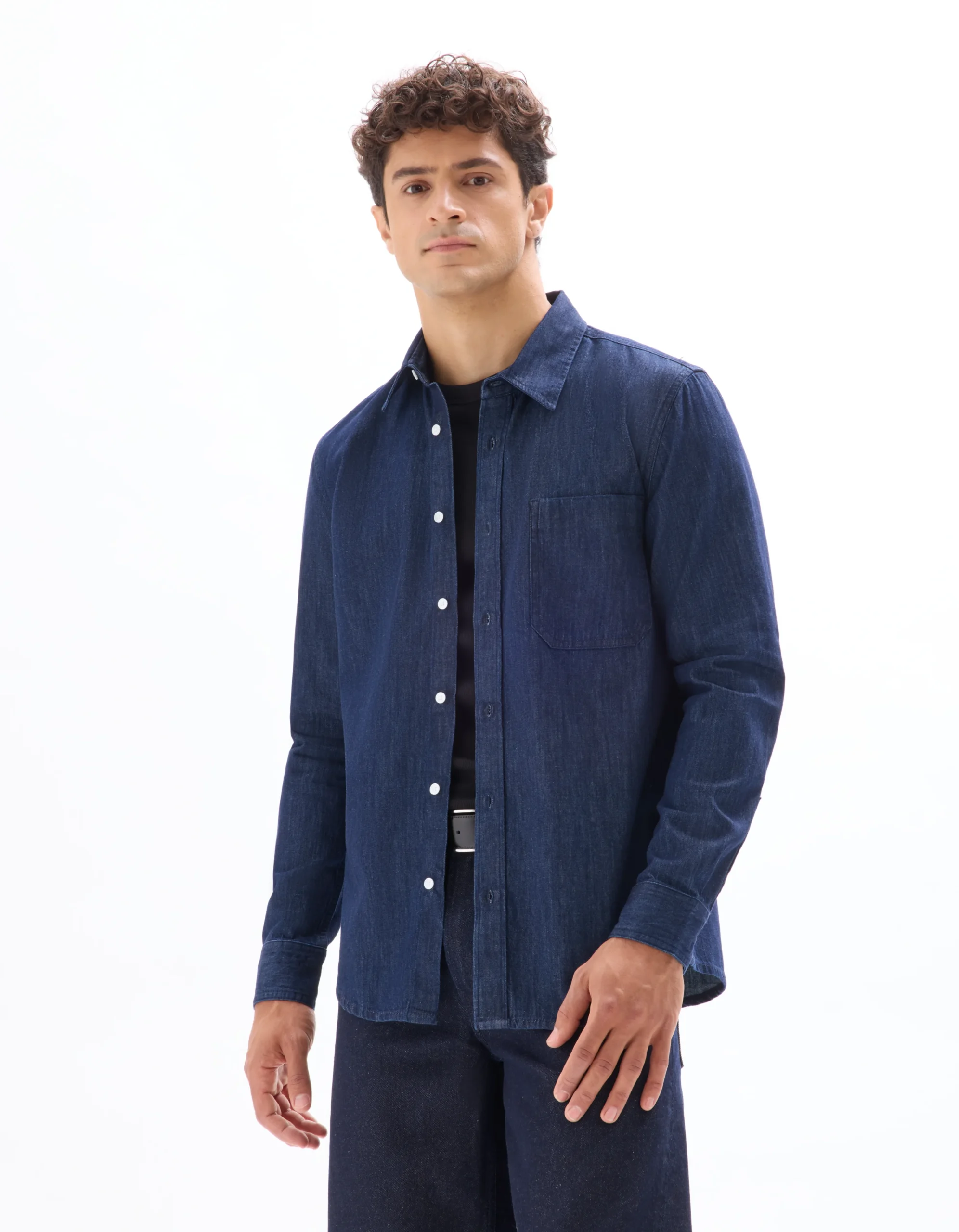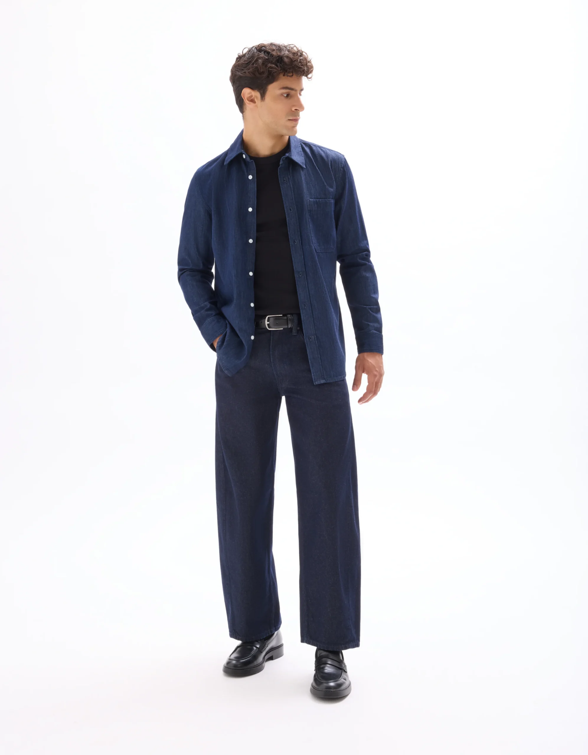 חולצה מכופתרת גזרה רגולר, גימור "ג'ינס" - כחול כהה