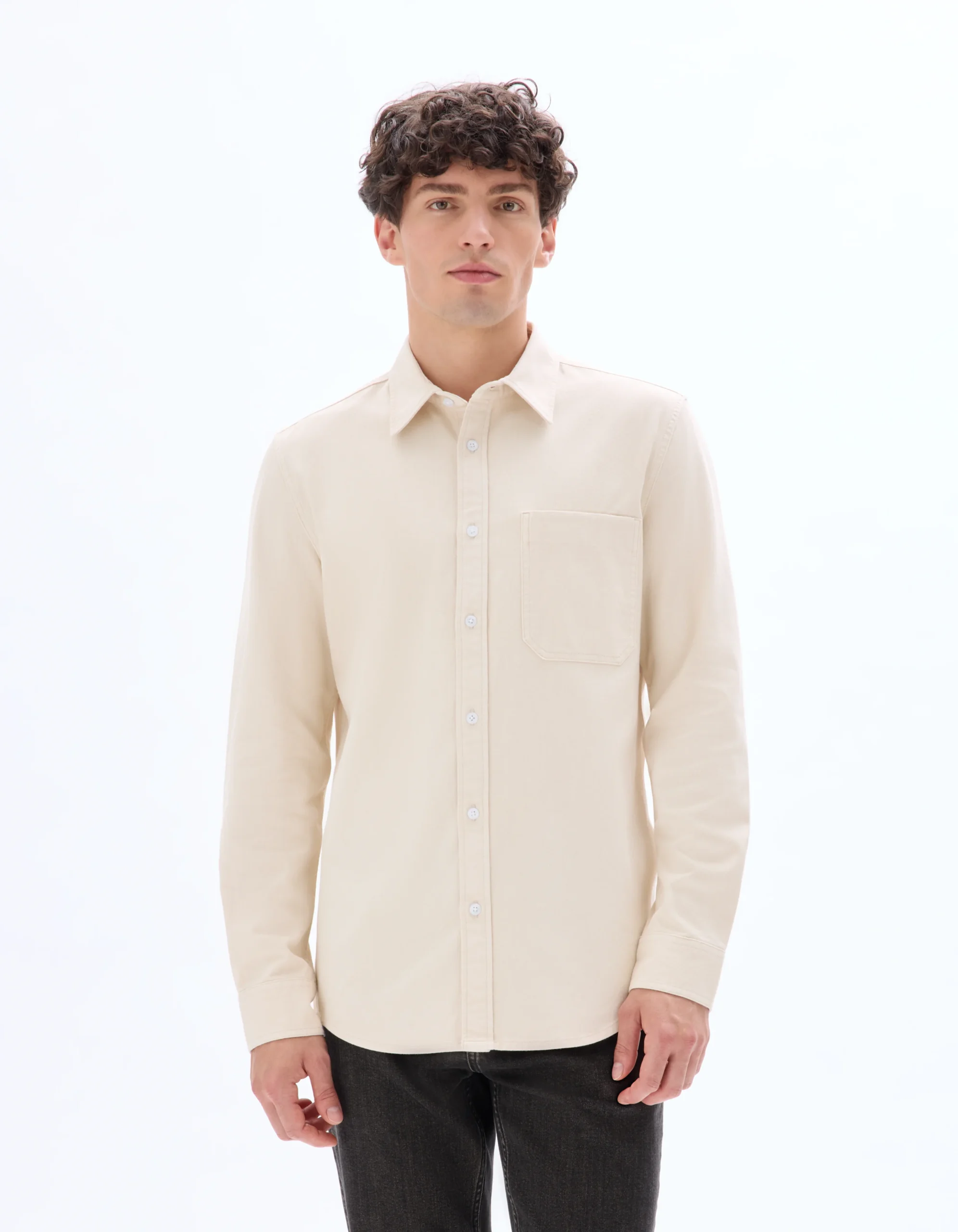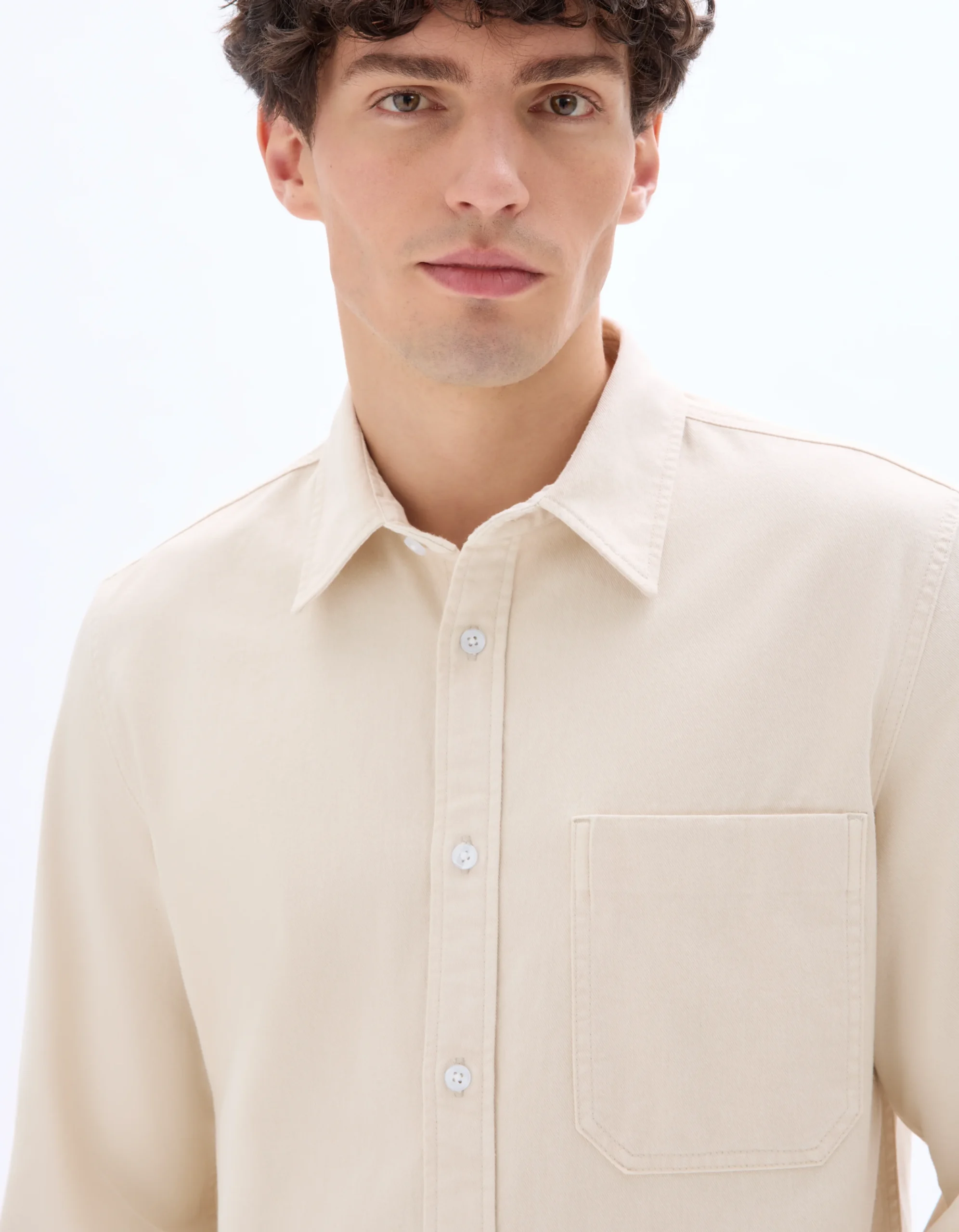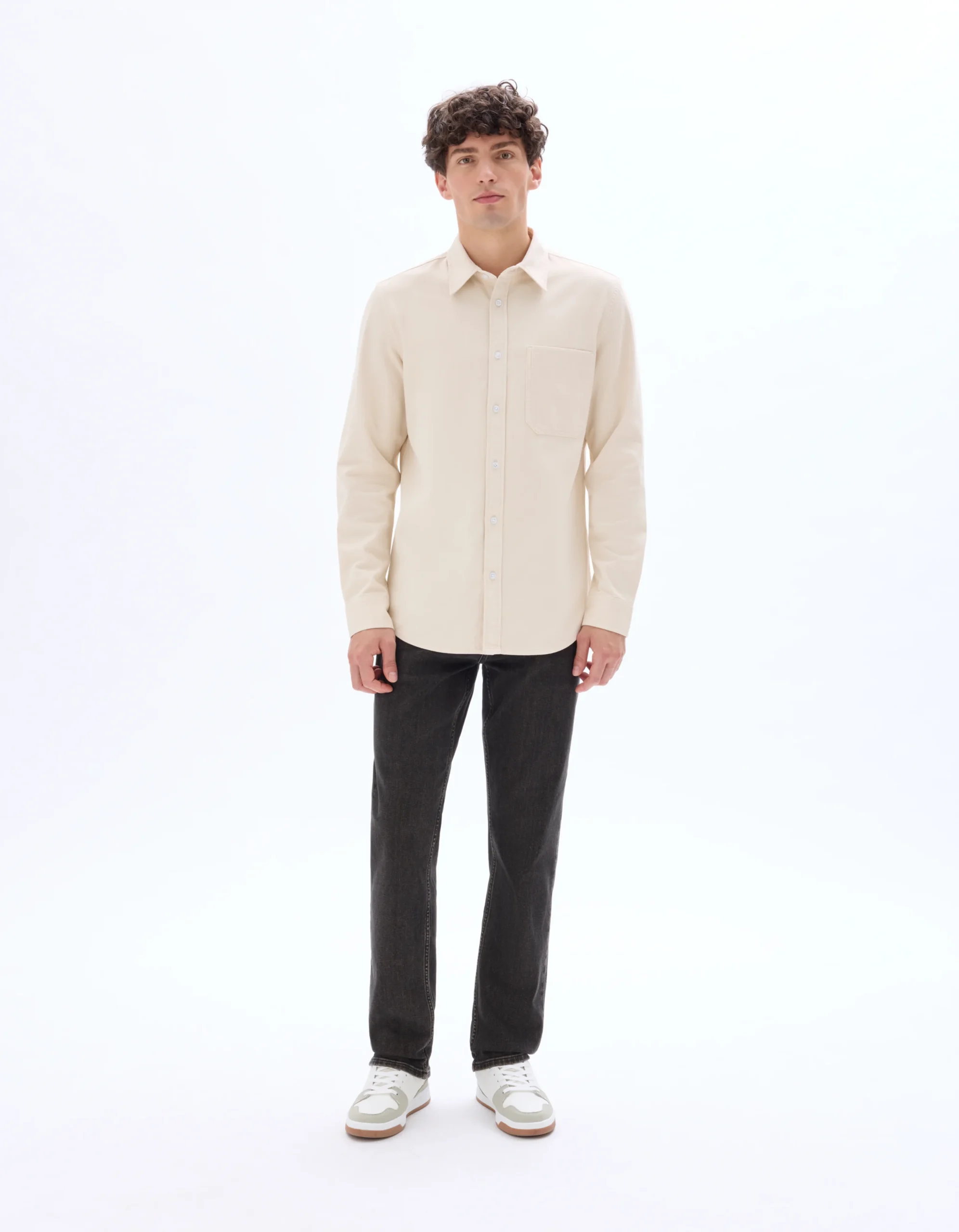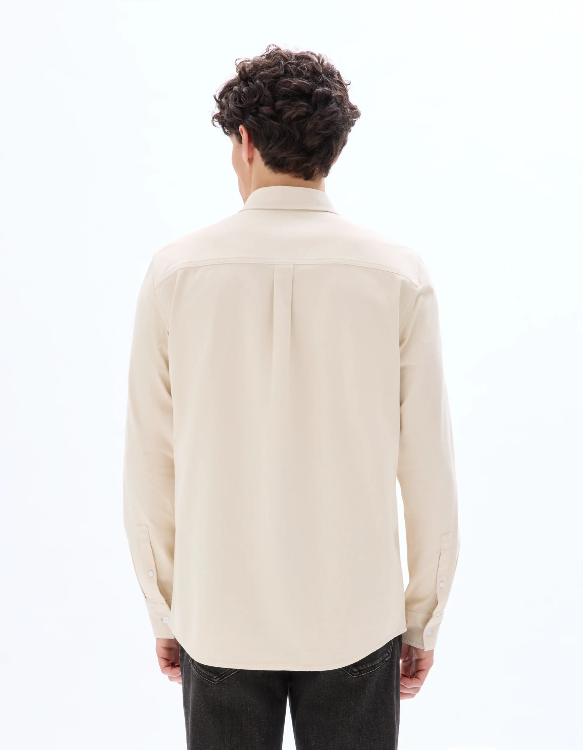 חולצה מכופתרת גזרה רגולר, גימור ג'ינס - בז'