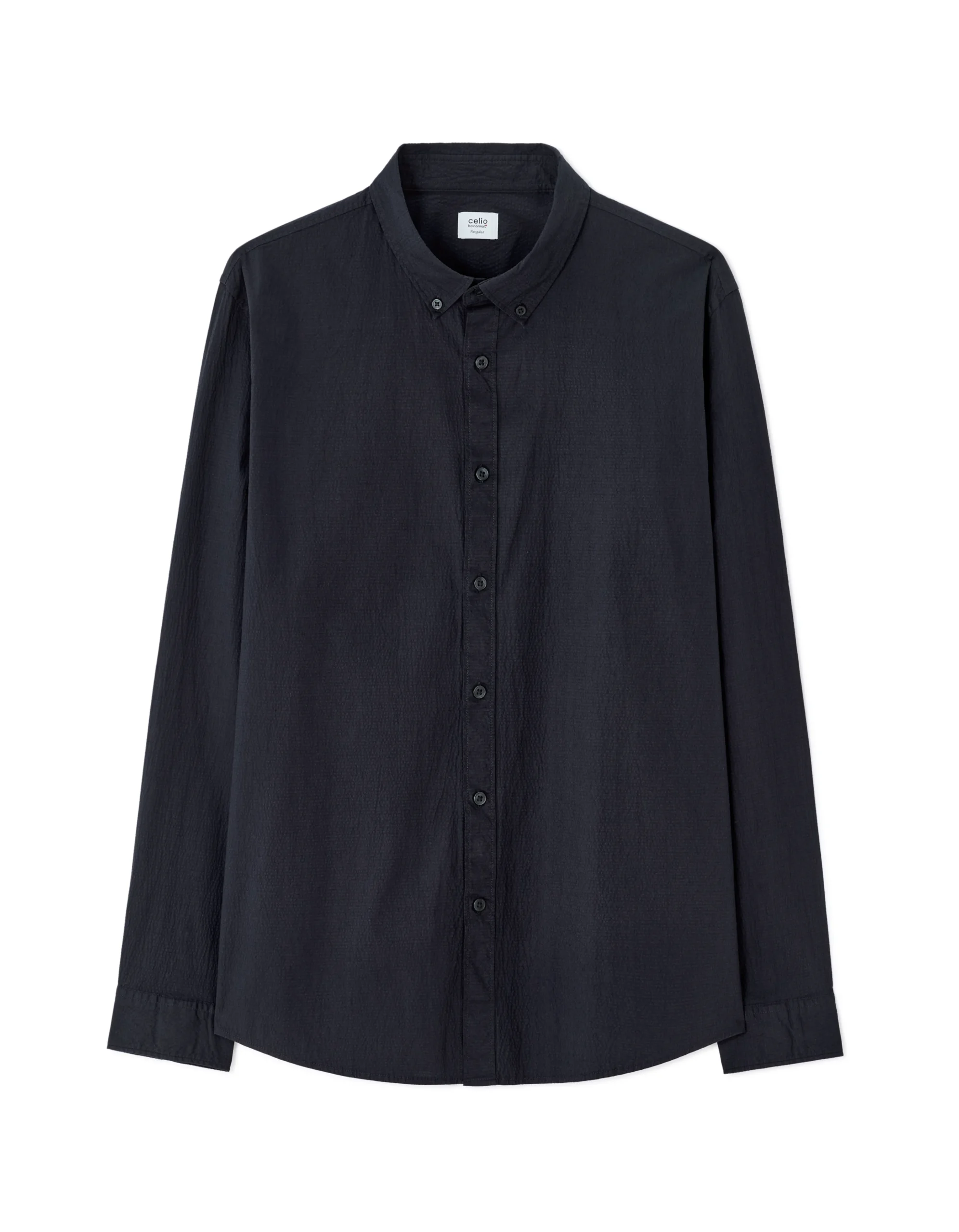 חולצה מכופתרת טקסטורה גזרה רגילה – כחול נייבי