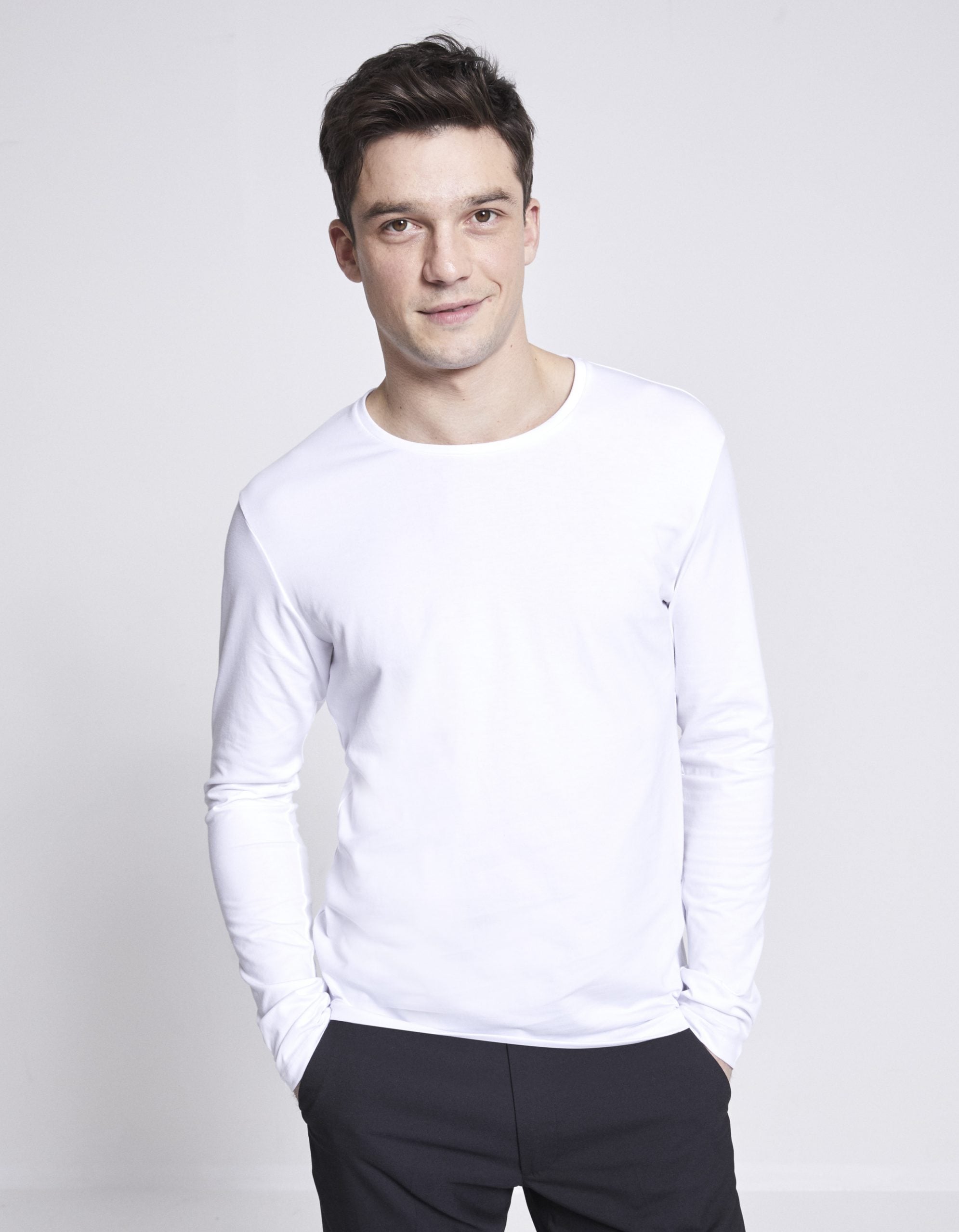 חולצת טי שרוול ארוך וצווארון עגול, כותנה supima