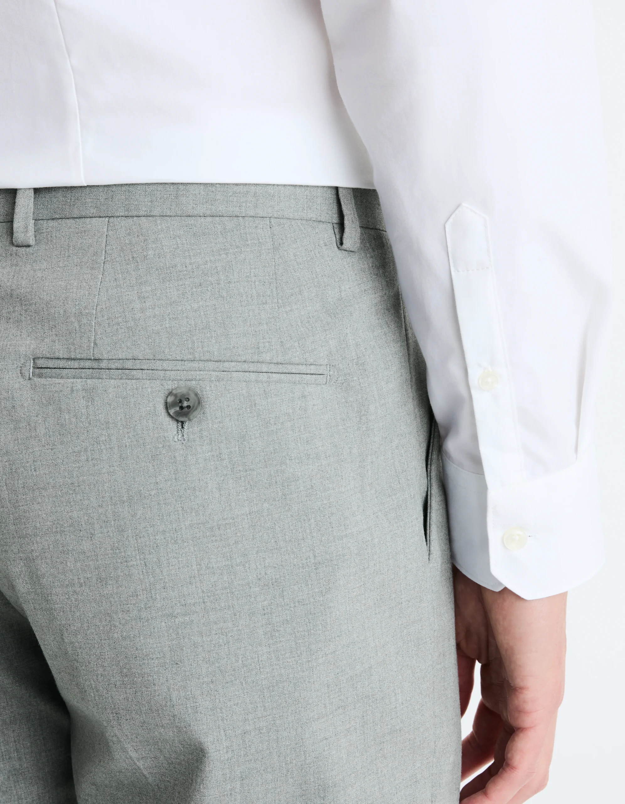 למכנסי חליפת אלה חגורת לולאות סגורות באמצעות וו ורוכסן מוסתרים, 2 כיסים איטלקיים ו-2 כיסים מכופתרים מאחור. קפל מסמן את אורך הרגל מלפנים ומאחור. לבשו אותו עם הז'קט התואם ללבוש רשמי.