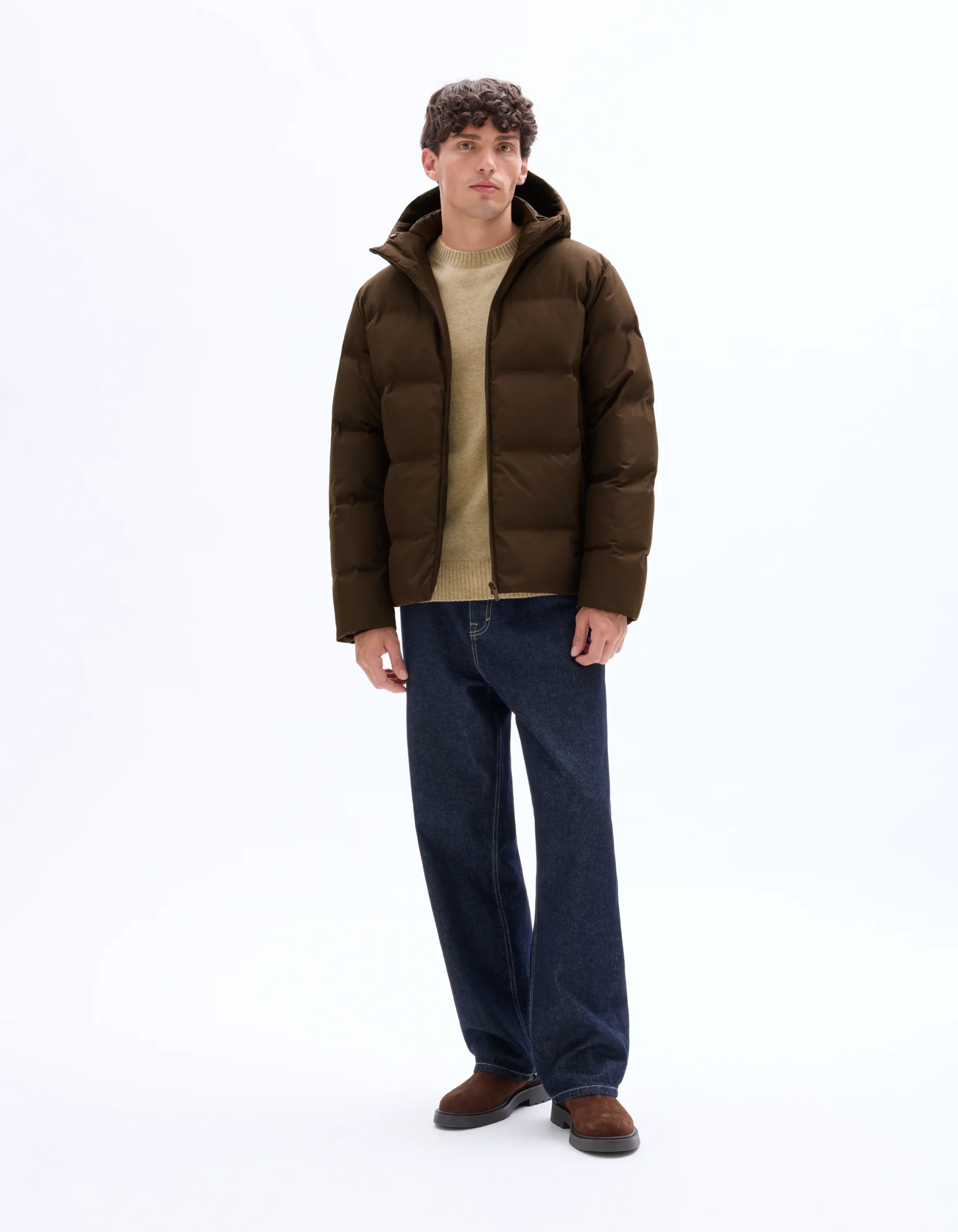 מעיל פופור עם מילוי דאון ונוצות – בז'