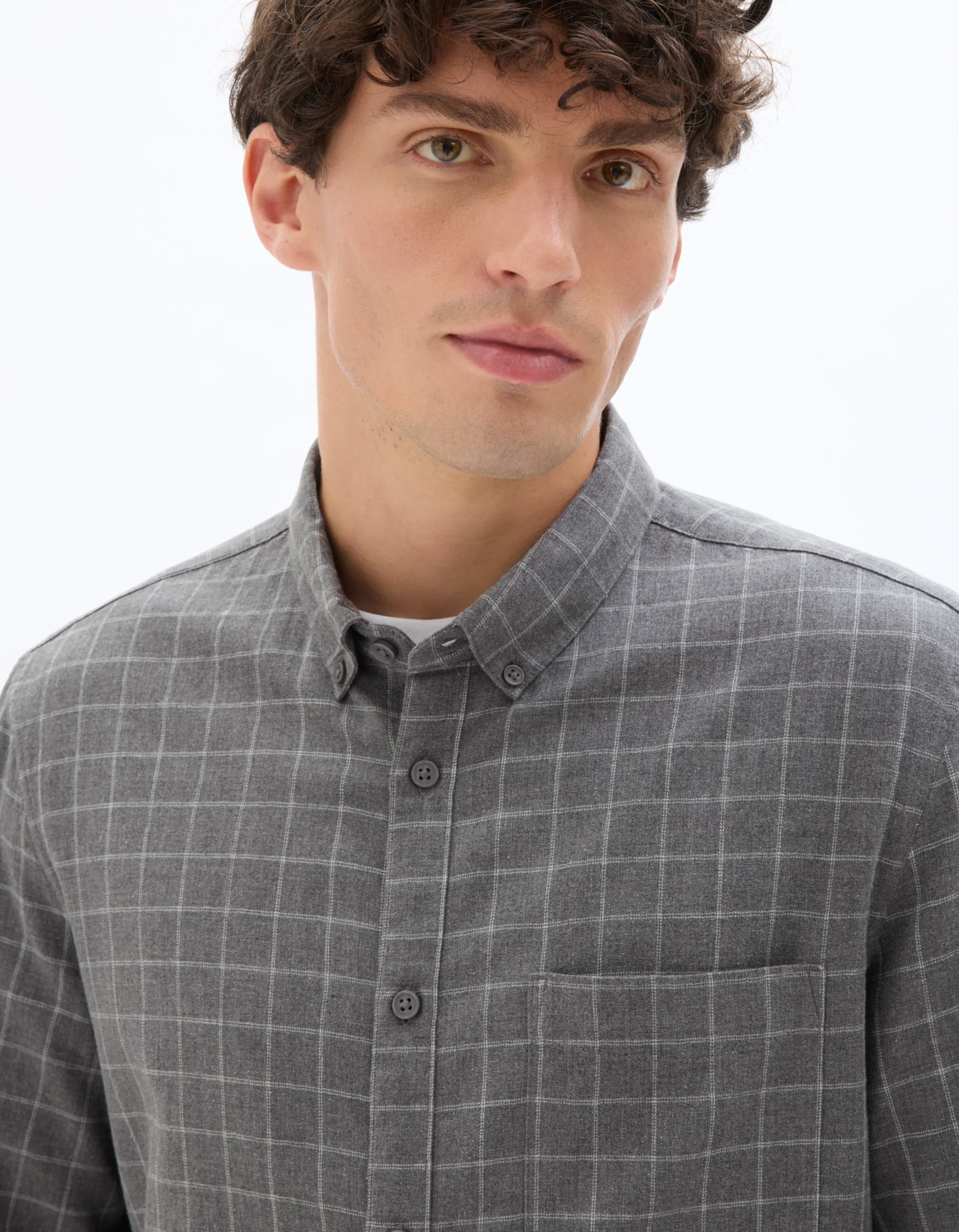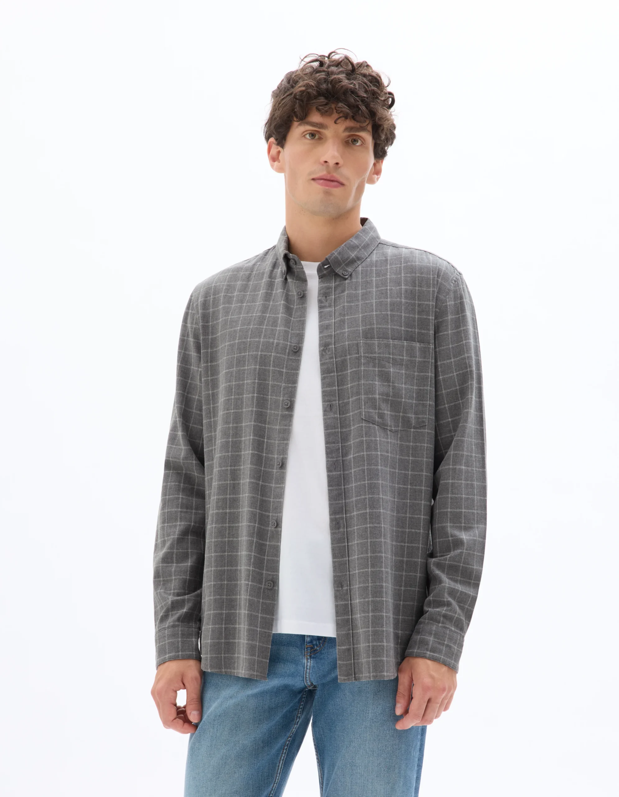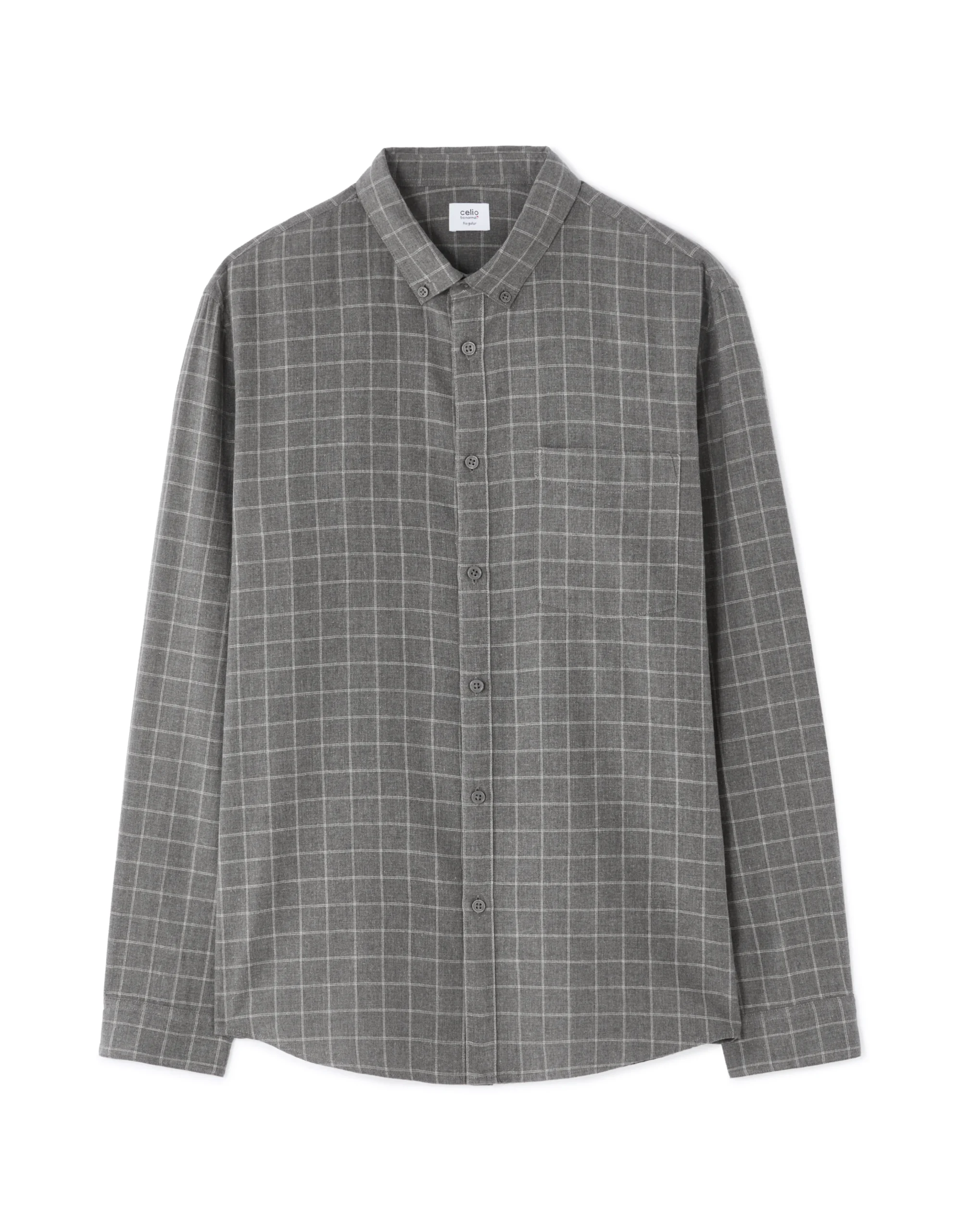 חולצה מכופתרת פלנל משבצות גזרה רגילה – אפור
