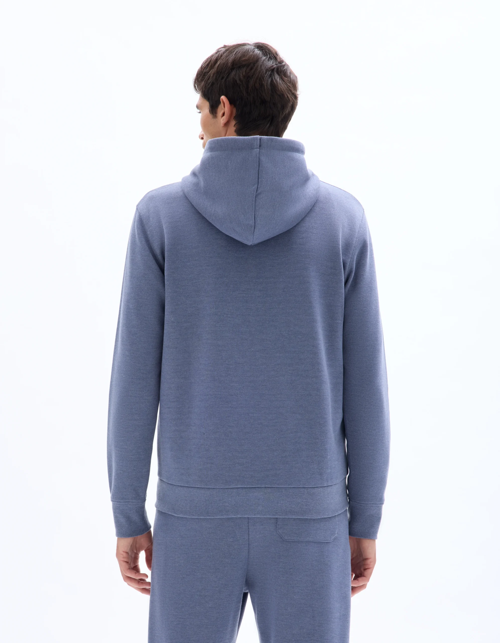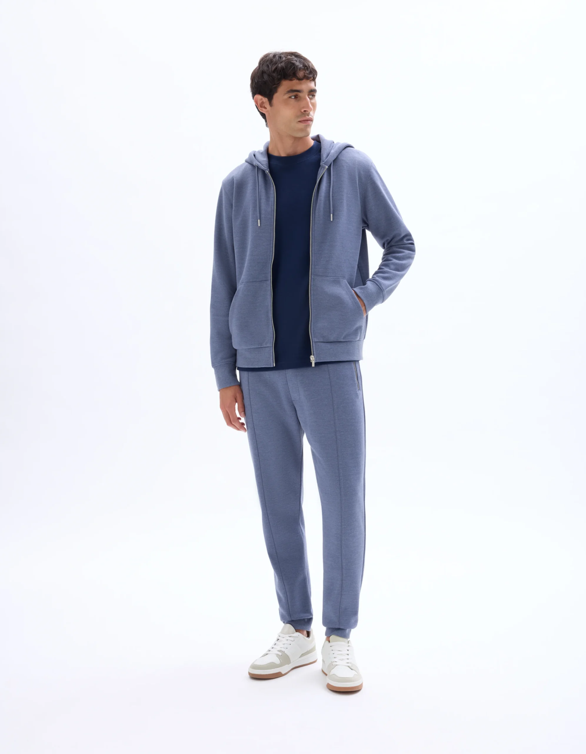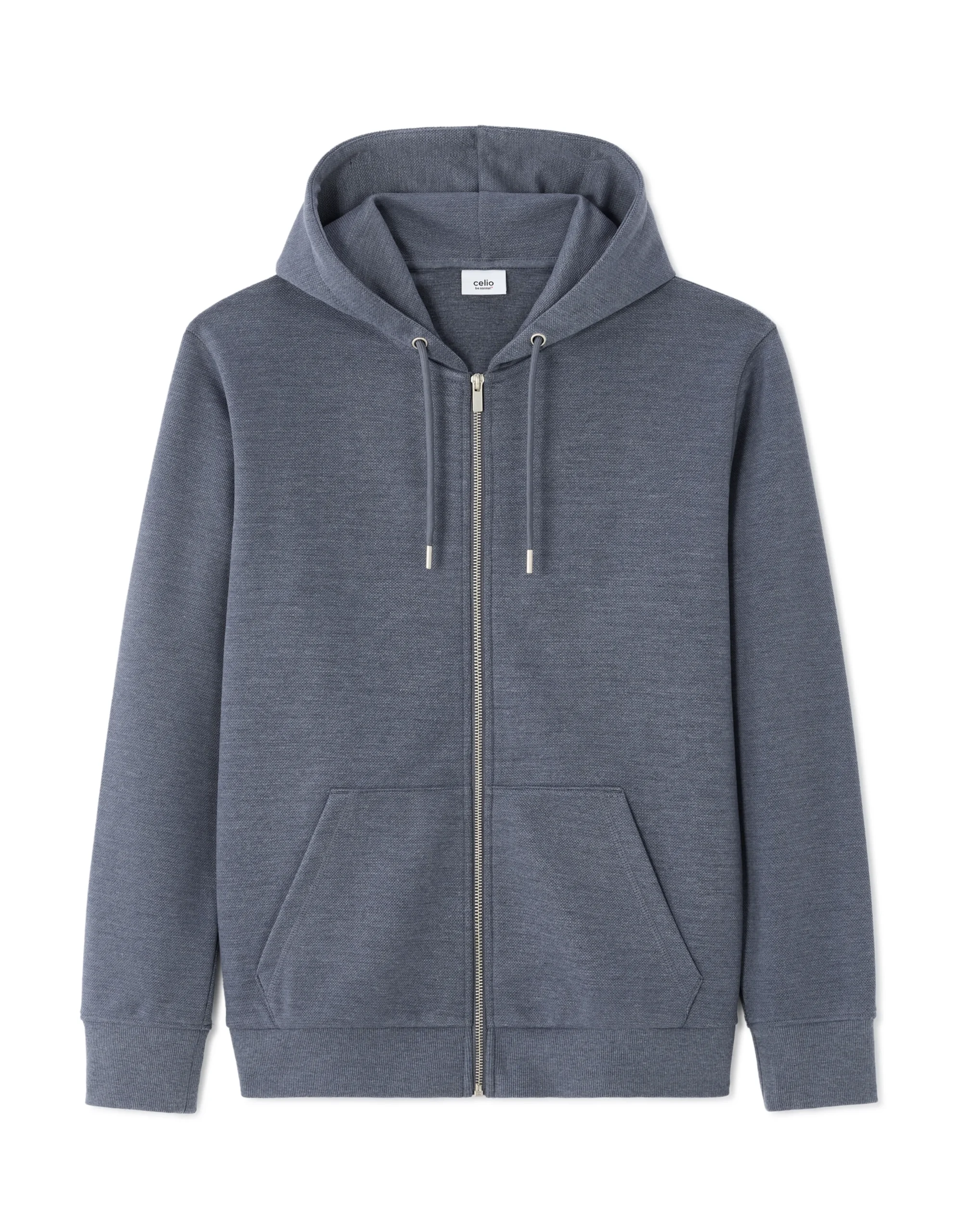 סווטשירט זיפ קדמי, גזרה רגולר, בד פיקה רך, כיס קנגורו – כחול אפרפר